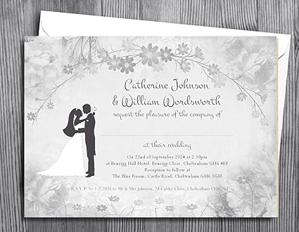 Wedding Invitations Pack Of 50 Personalised For Day Or Evening 15x10cm Flower Silhouette Invites With Choice Of Envelopes Amazon Co Uk Home Kitchen